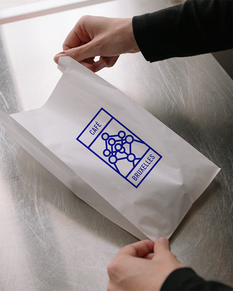 Modern visual identity for Café Bruxelles in Vilnius, inspired by Brussels’ heritage, the Atomium, and Art Deco elements. The result is a sleek, contemporary look with a touch of classic elegance.